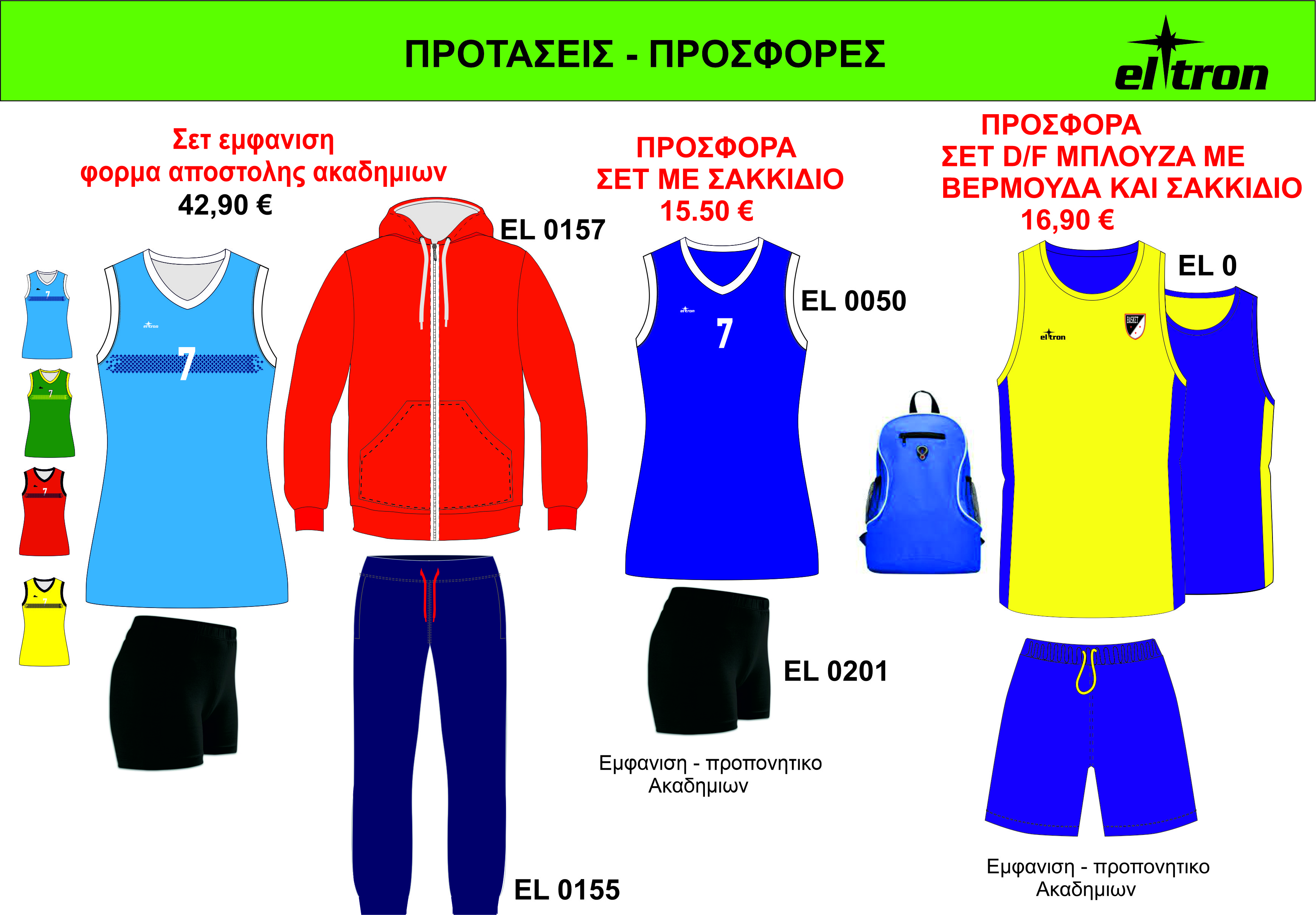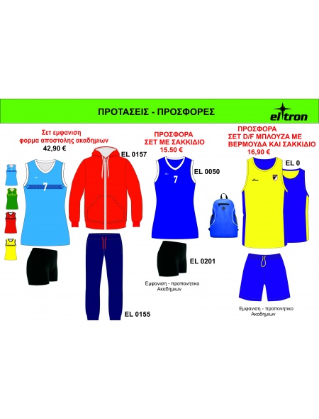 Όλα τα προϊόντα διατίθενται σε μεγέθη από 4XS μέχρι και 4XL και σε όλους του συνδυασμούς χρωμάτων.